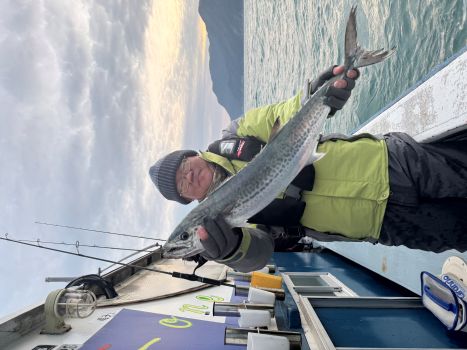 前半はジギングでサワラ・青物探し、ファーストヒットはサワラで続かない、その後サゴシがパラパラと、