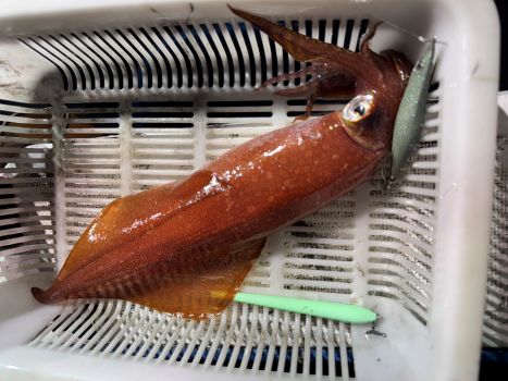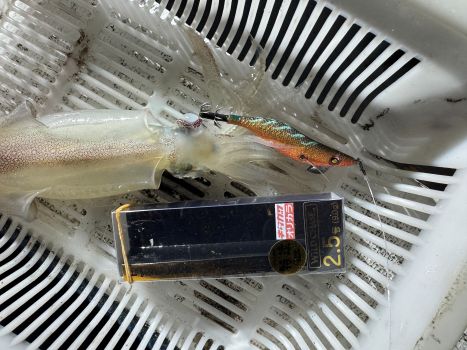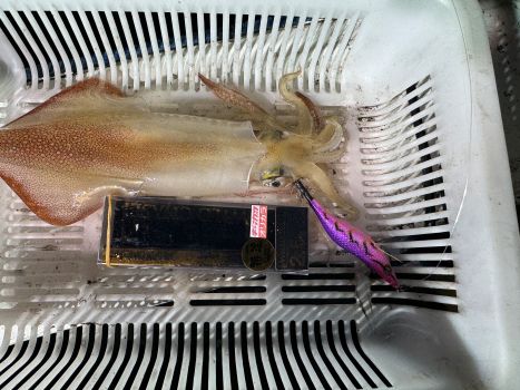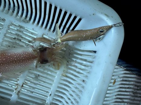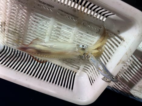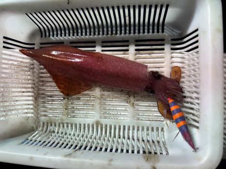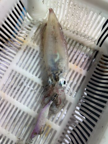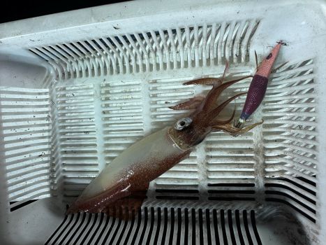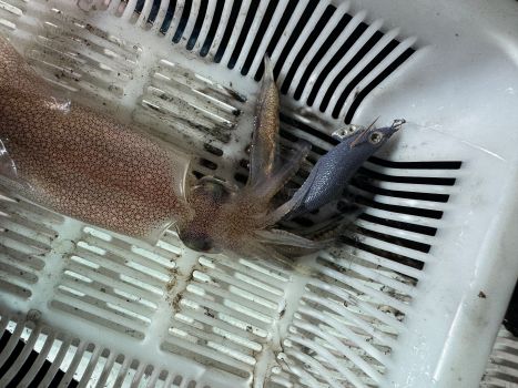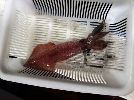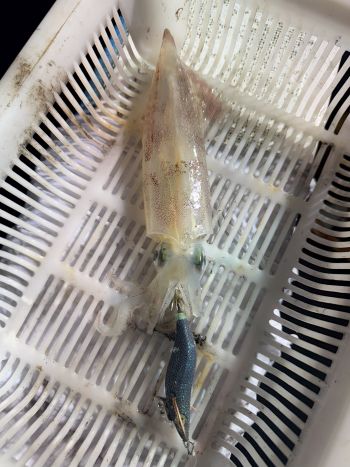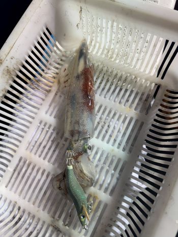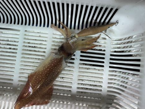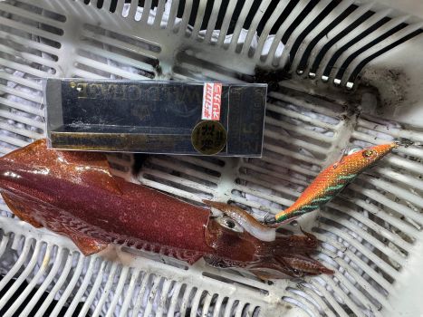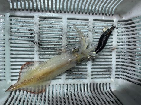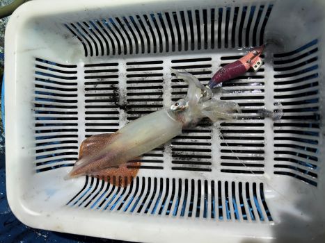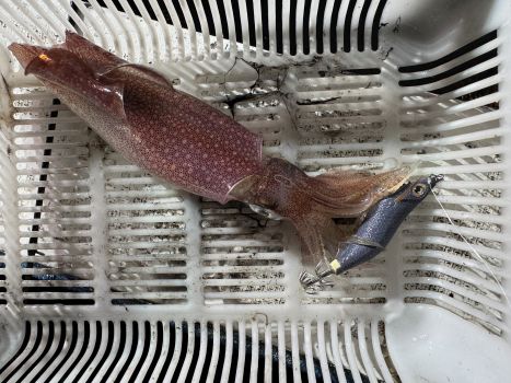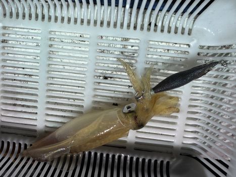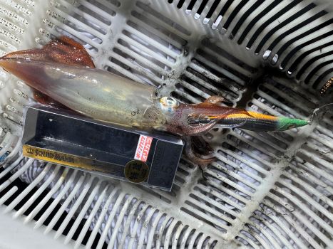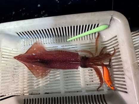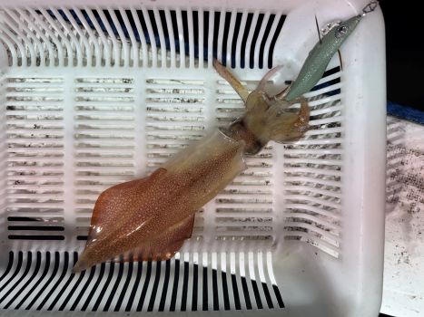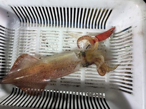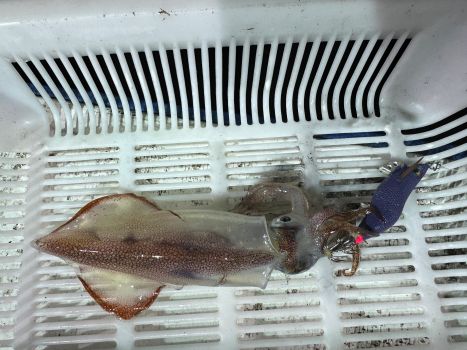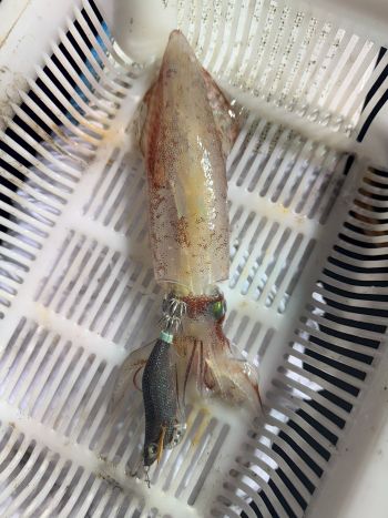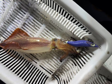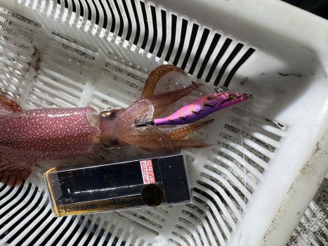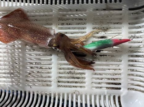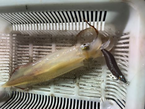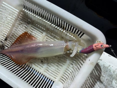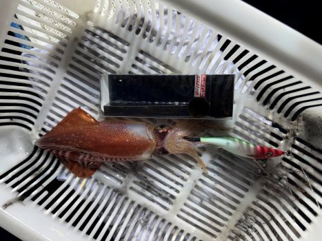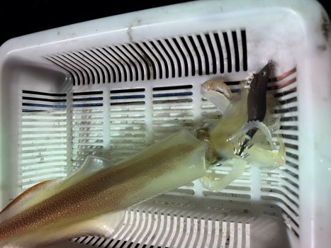 マイカはほぼペットボトルサイズでスルメはムギ大、後半はスルメの機嫌は良くなったが上潮ぶっ飛び上潮と中間の潮は逆向けで釣り辛かったです。
