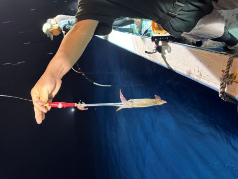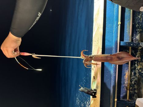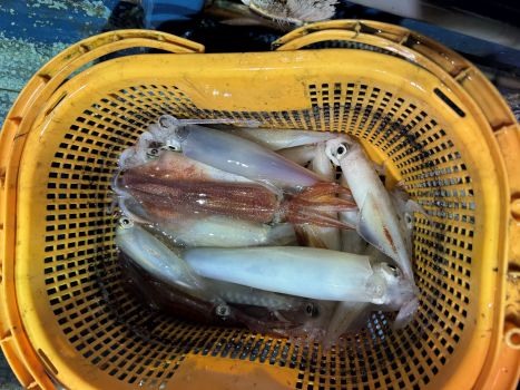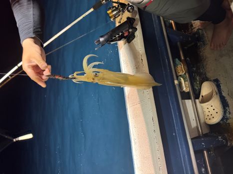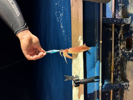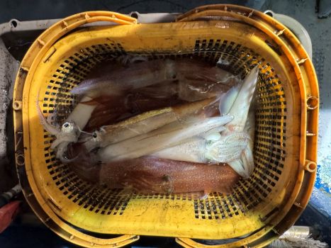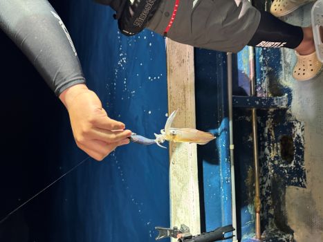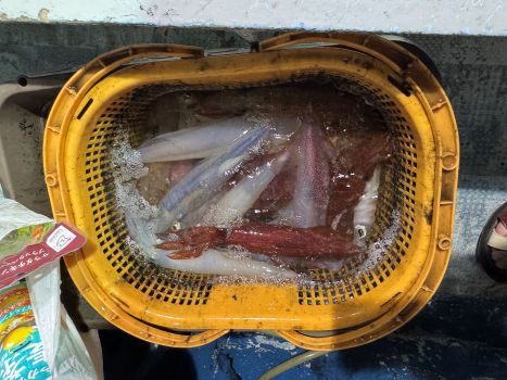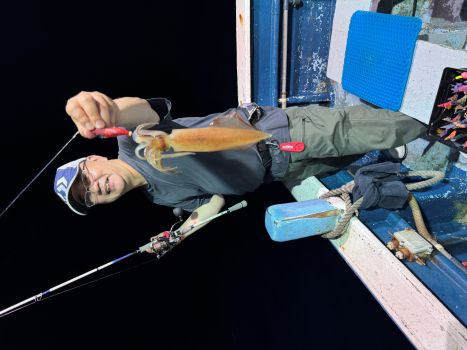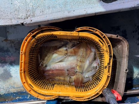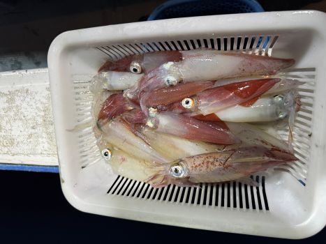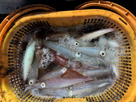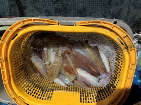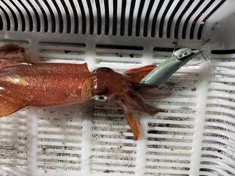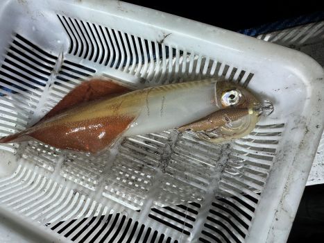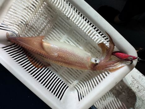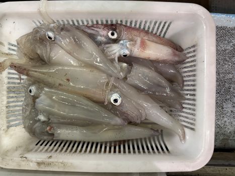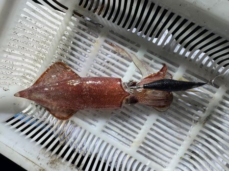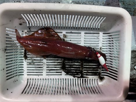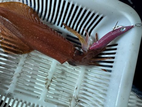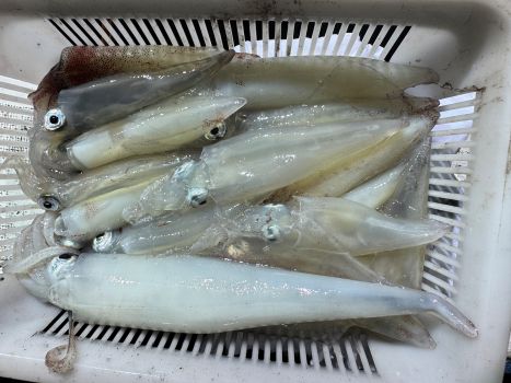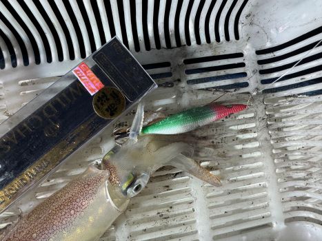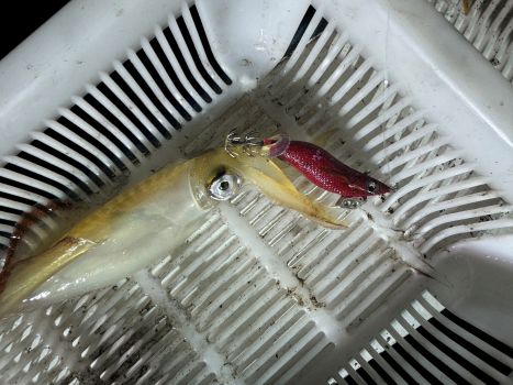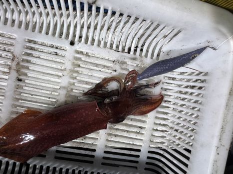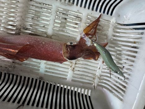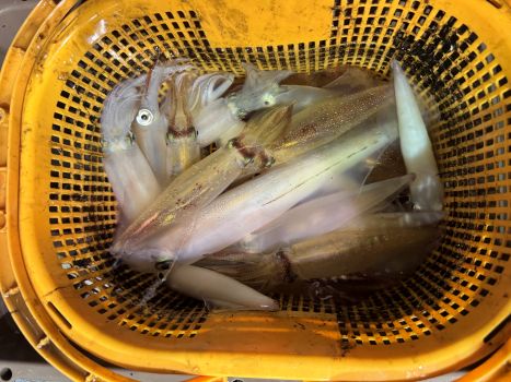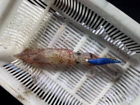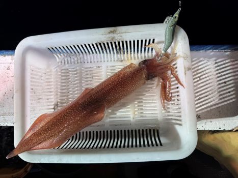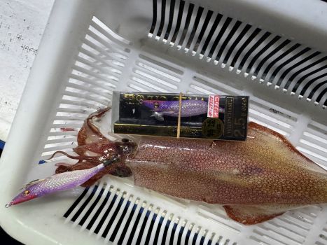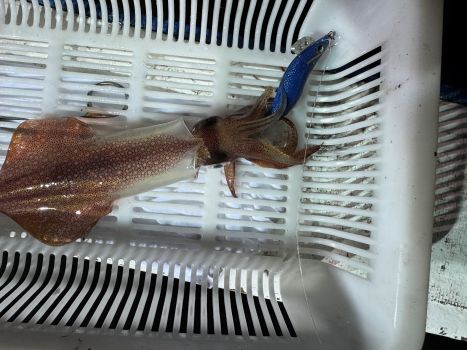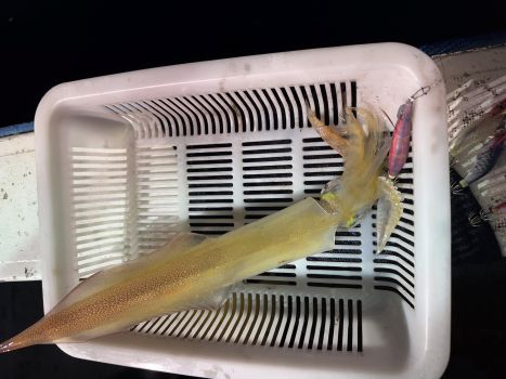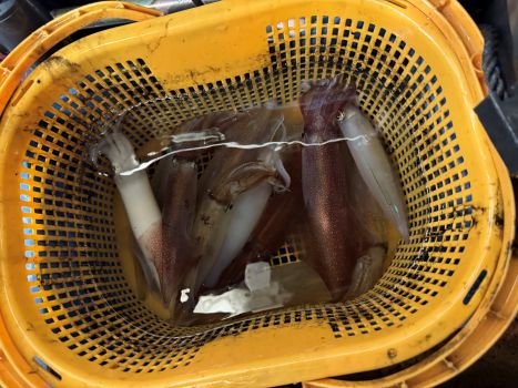 マイカはほぼペットボトルサイズでスルメはムギ大、後半はスルメの機嫌は良くなったが上潮ぶっ飛び上潮と中間の潮は逆向けで釣り辛かったです。