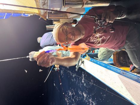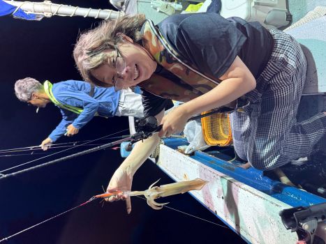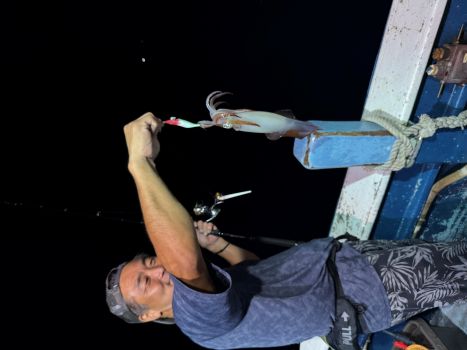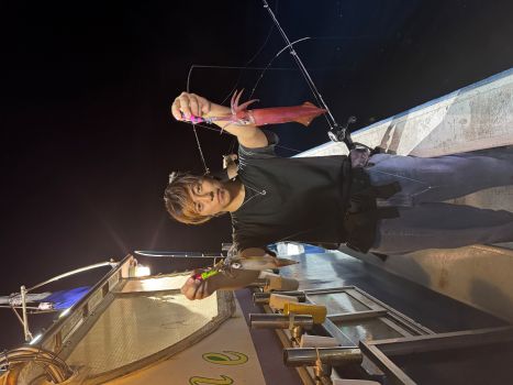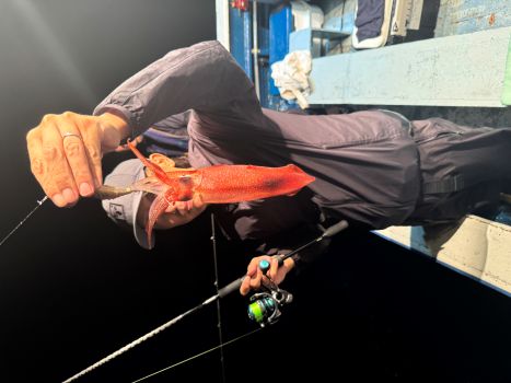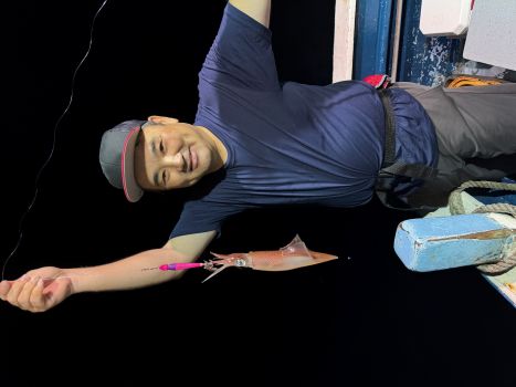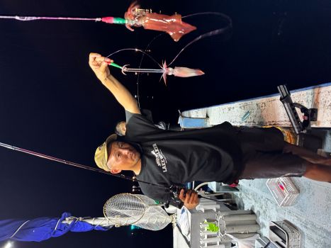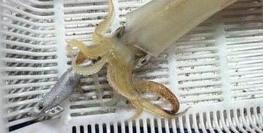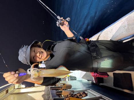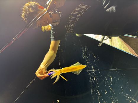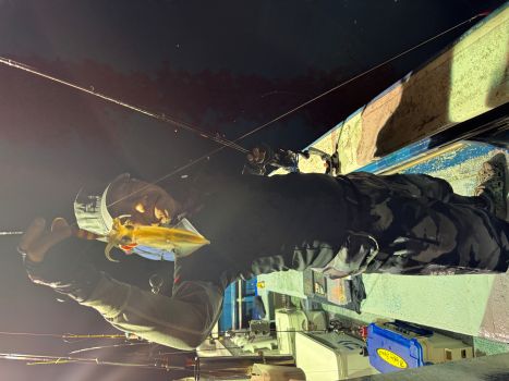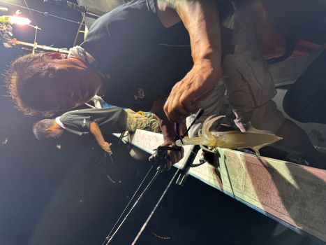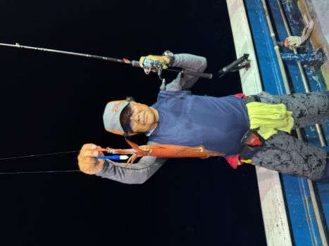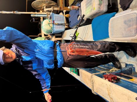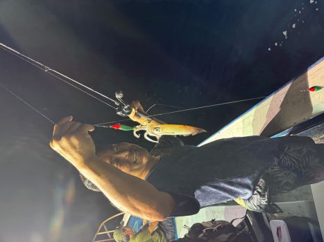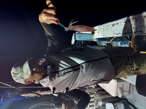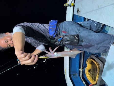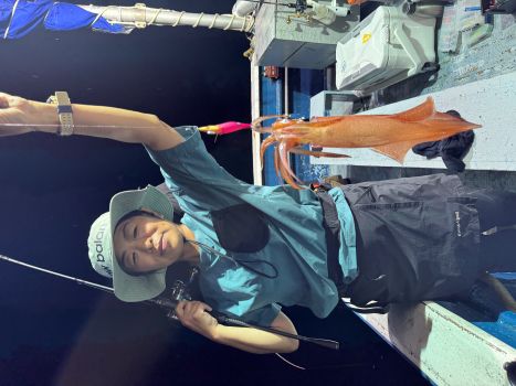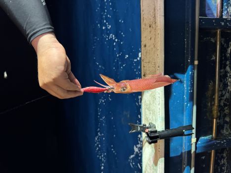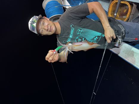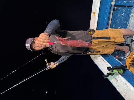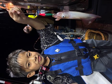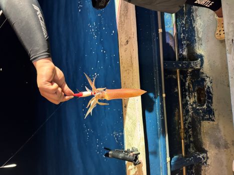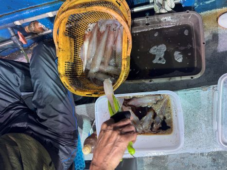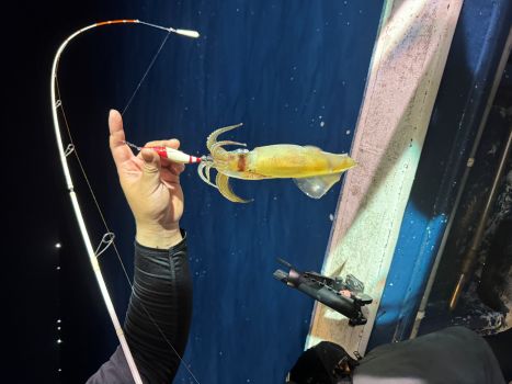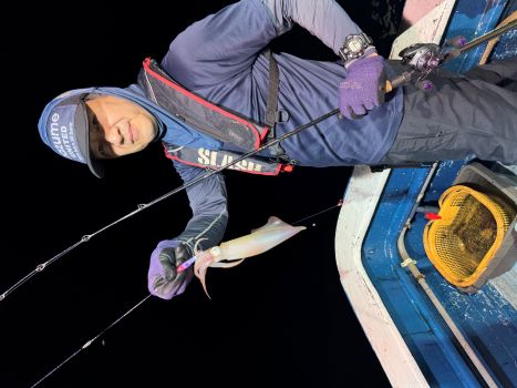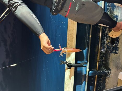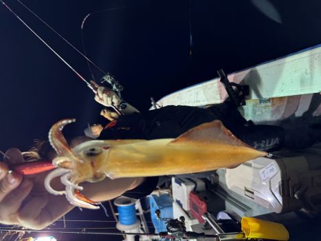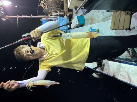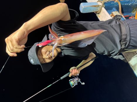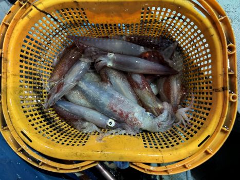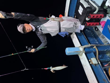 マイカはほぼペットボトルサイズでスルメはムギ大、後半はスルメの機嫌は良くなったが上潮ぶっ飛び上潮と中間の潮は逆向けで釣り辛かったです。