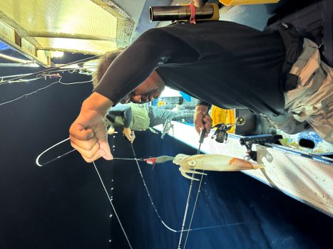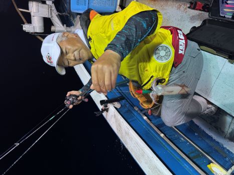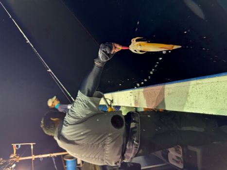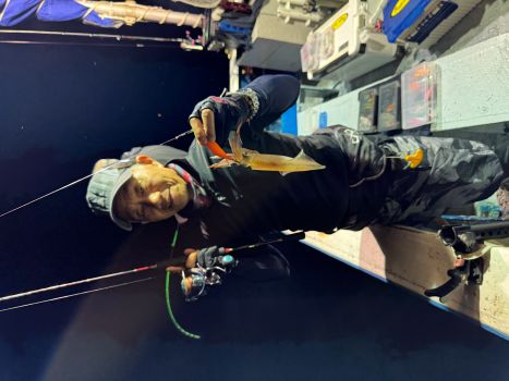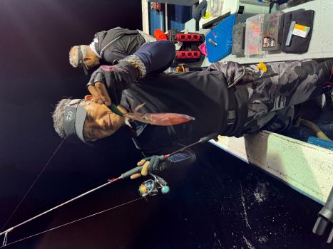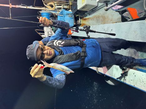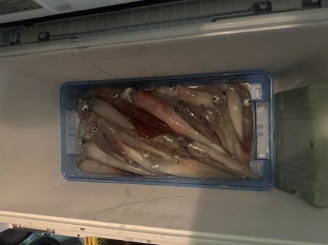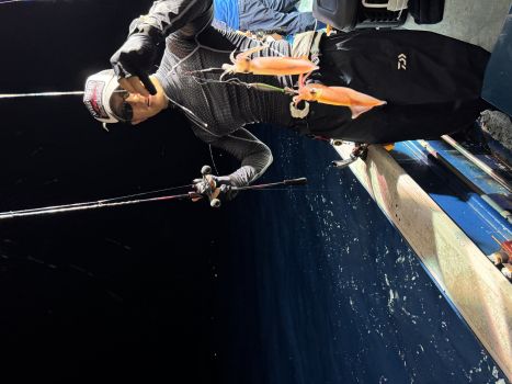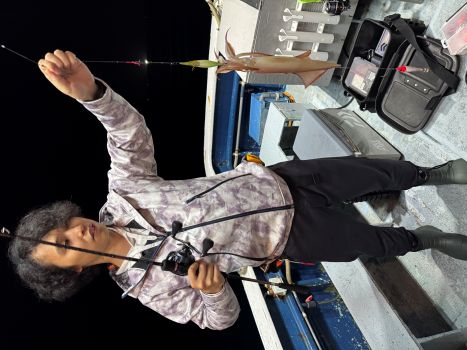 潮は激早!中盤までボトムでポツリポツリで棚もバラバラ、マイカとスルメも混ざりながら棚も深めで苦戦してました。