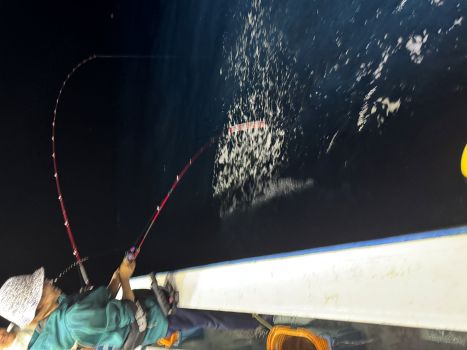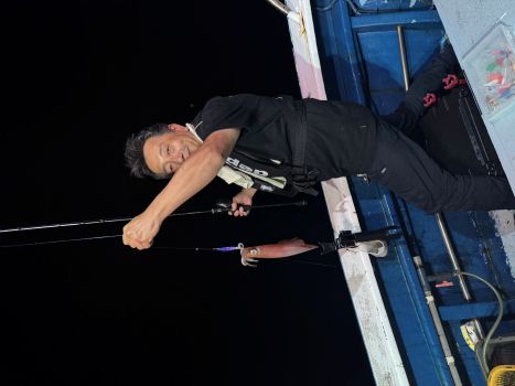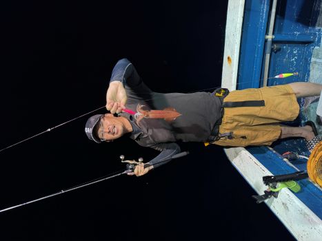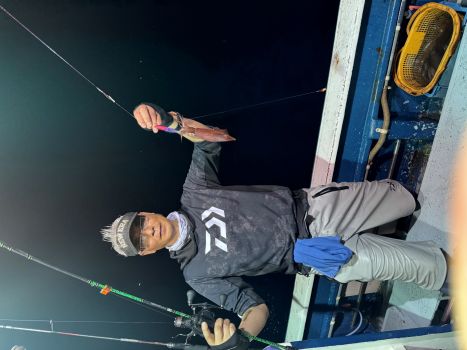 前半はジギングで刃物狙いに、いまいちの反応でラインブレイクありでしたが残念なが後はヒットならず早々諦め赤物探しに、