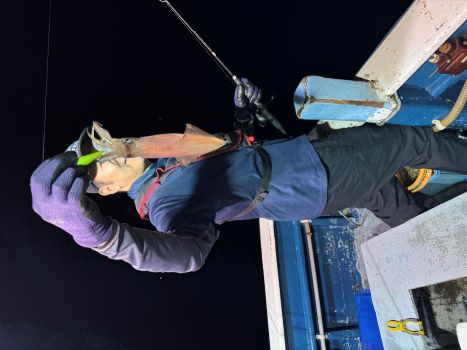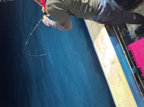 前半はジギングで刃物狙いに、ウロウロしましたが反応は直ぐに抜け捕まえるのが大変なかなかの苦戦で前半は撃沈、