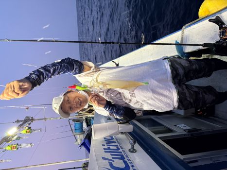 前半はジギングで青物・刃物探しに、反応はあるが食い気無し潮も流れ無く苦戦、