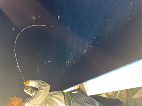 本日の夜は小雨模様で海は後半から激風でドタバタした。