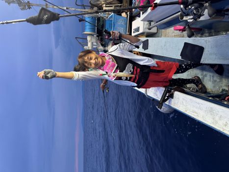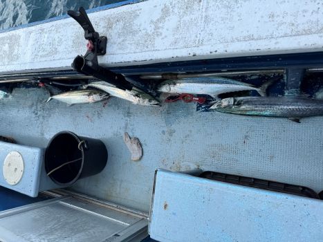 早々に青物探しにウロウロとナブラ発見で大ハマチゲットが皆さんスーパーライトタックル一揆に竿が曲ると隣りとのラインズレでラインブレークが多数でした。