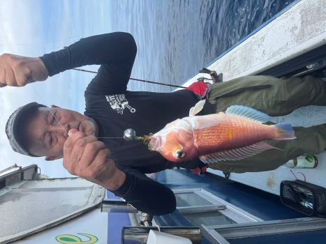 深場に赤物探しに、中盤まで良くアタルが小さ目のレンコダイにアオハタなど釣れてました。