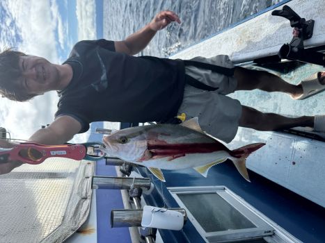 ポツポツと混じり真鯛の顔も見れ反応には青物の気配ありで青物大ヒット、