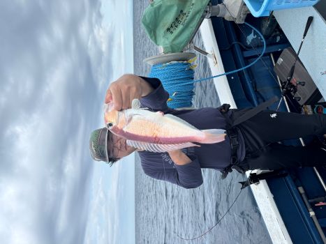 前半は赤物狙いに、ファーストヒットはフグから始まりレンコダイなど、いまいち赤物の食い気が無いのかアタリも少なく苦戦してました。