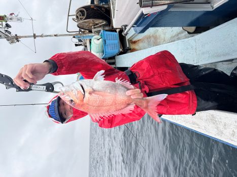 中盤もエソは相変わらず活性が高い、風も吹くし上潮は激流で釣りにく中真鯛が連発ヒット、