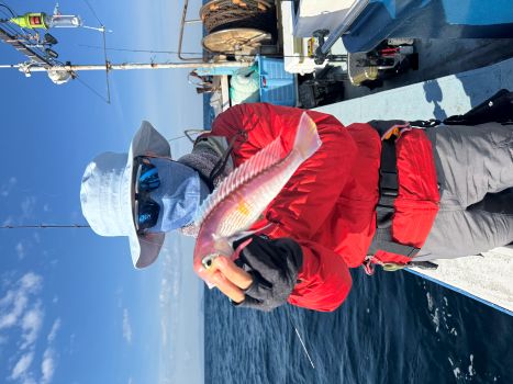 中盤は赤物探しに、レンコダイはパタパタと連発モードにサイズも良いのですがアマダイがいまいち、真鯛もいまいちで苦戦してました。他にはアオハタ・ホウボウ・カイワリ・アオコ(ツバス小)など釣れてました。